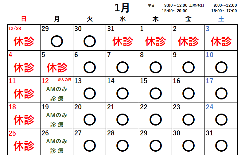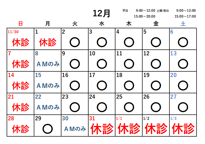 12月より月曜日も診療致しますので、